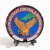 緑の地図は西空の領域、鷹は空の守り、三本の矢は団結、外周の赤は闘魂を表した