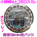 小諸城址とコモロスミレがデザインされたおしゃれなマンホール缶バッジです