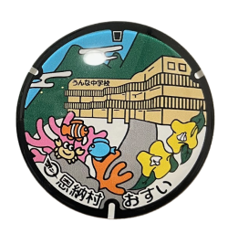 「UNNA魂プロジェクト」の一環として、恩納村立うんな中学3年生がデザインしたマンホール。